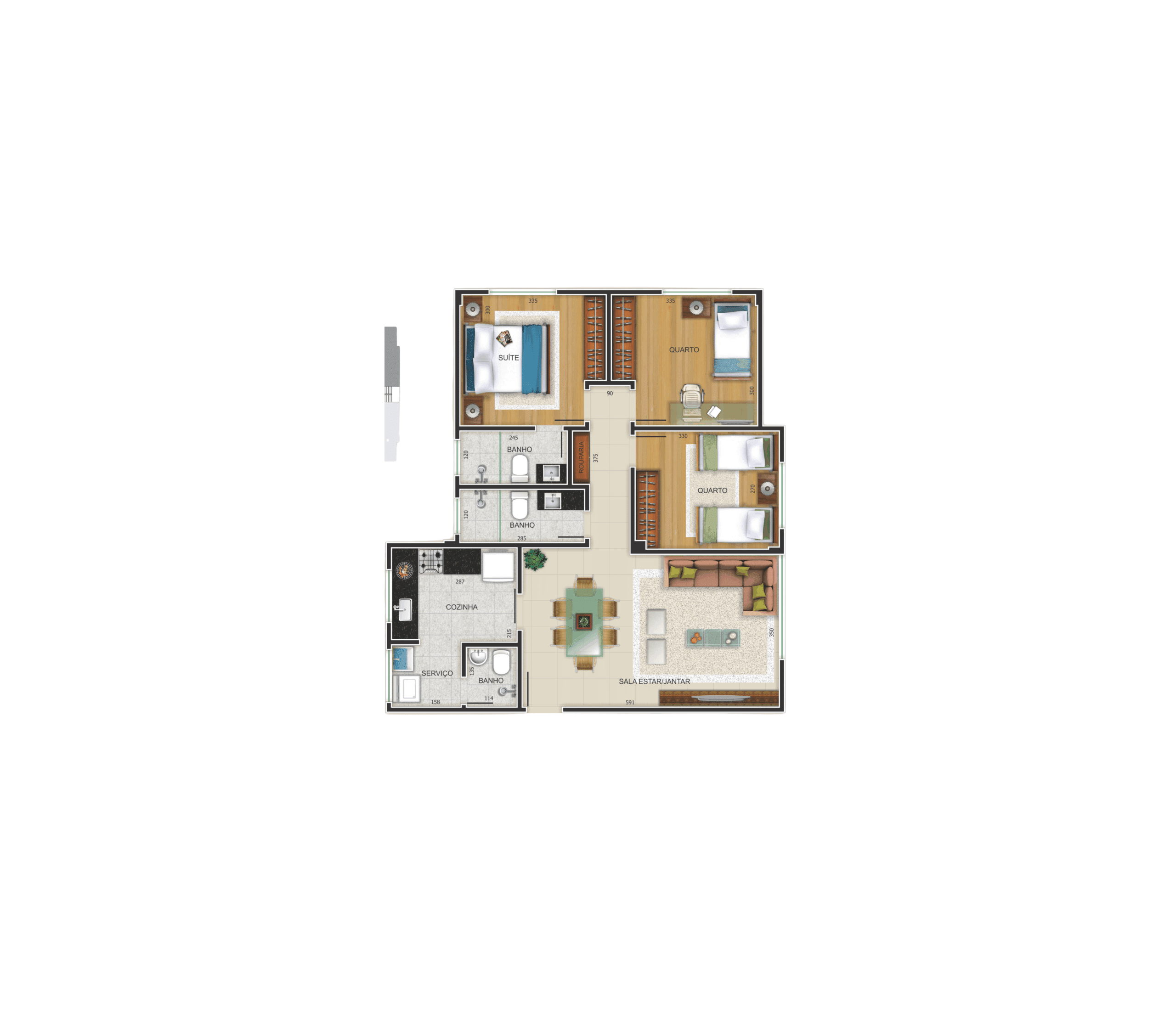 de 3 quartos, projetados com